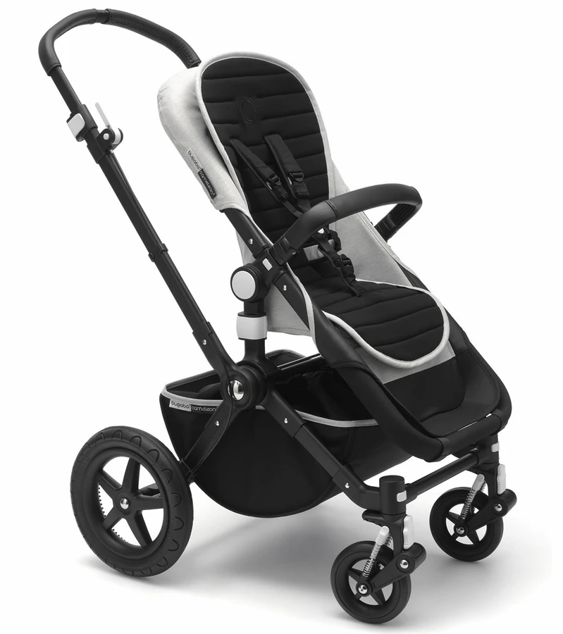 On four wheels or two, around the city, over sand or through snow, you can take the Bugaboo Cameleon off-road thanks to its large wheels and adjustable suspension — while the independent seat always allows you to carry your child with you everywhere you go. Pushing or carrying your Bugaboo Cameleon3 in style just got even more comfortable with the addition of a precision-stitched faux leather handlebar and carry handle.