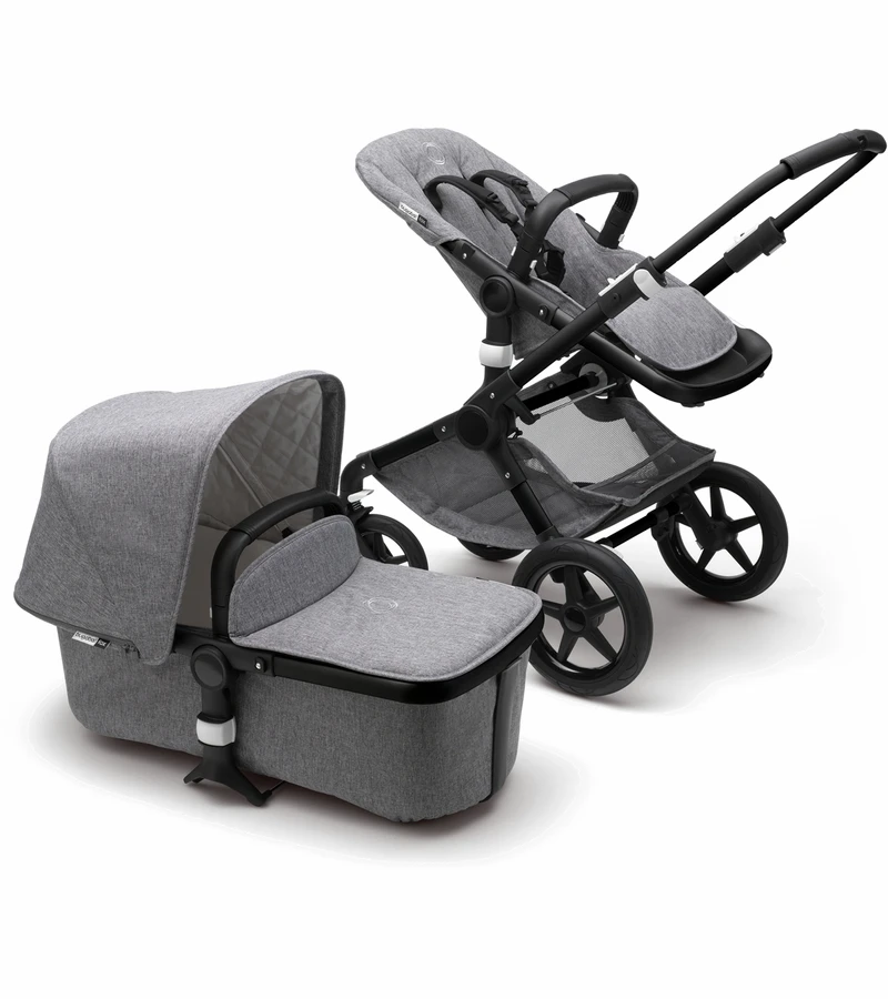 Practical DetailsThe Bugaboo Fox features practical details like the large easy-access under seat basket with built-in pockets, and the foot brake which is easy to apply and release with a simple shoe-friendly clicking action. Integrated Attachment PointsSimply click Bugaboo Accessories directly onto the strollerÂ’s integrated attachment points. Easily install accessories like the parasol, cup holder or wheeled board, then head out to explore. High Seat PlacementThe strollerÂ’s seat is positioned at an optimal height, without compromising the stability of the stroller. Perfect for lifting your child in and out. Ultra-light ChassisThe chassis of the Bugaboo Fox is strong and sturdy while weighing in at just 21.8 lbs. ItÂ’s easier than ever to lift, carry and transport. Seamless One-piece FoldWhether youÂ’re bundling it into the car or carrying it up the stairs, the easy one-piece fold and self-standing design makes transporting your stroller hassle-free. Compact FoldIts super-compact fold makes storage a breeze, folding easily into a cupboard-friendly size. High-quality, long-lasting materialsThe Bugaboo Fox is made to last from durable materials and fabrics. You can use it for your first child, pass it through your family and friends, and it will still be going strong years later. Fabrics made with recycled materialsMobility and moving freely shouldnÂ’t come at the expense of our planet and the people on it, so Bugaboo created Fox fabrics with existing materials. 92 recycled PET bottles are used to create the Core Collection fabrics for the Bugaboo Fox. Refresh easily to extend the lifecycleWhether itÂ’s a new season or a new baby, itÂ’s easy to refresh your stroller with a wide range of colors and fabrics. Switch it up, mix and match, and create a whole new look simply by switching your sun canopy or seat fabrics. Smooth, stable ride on all surfacesAdvanced all-wheel suspension and big tires give a stable, steady ride on any surface; whether itÂ’s a city sidewalk or a bumpy trail. Ultimate comfort for childBugaboo’s best drive performance yet and new central joint suspension means a smooth, bump-free ride for your child. Plus, the bassinet and seat have been ergonomically designed to make the stroller even more comfortable. Lightest push – no effort, just goWhen youÂ’re behind the stroller, pushing and steering feels effortless. Navigating corners, busy streets and tight spaces becomes a breeze; itÂ’s like power steering for your stroller. What You Get: