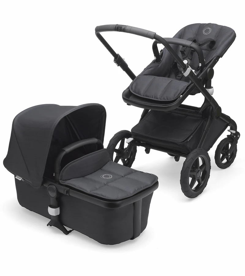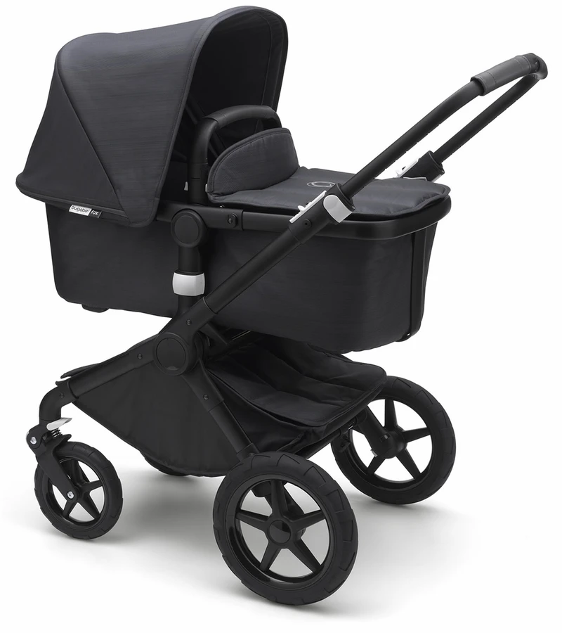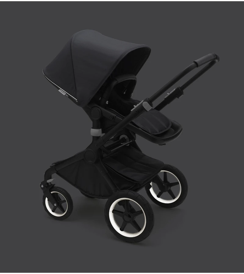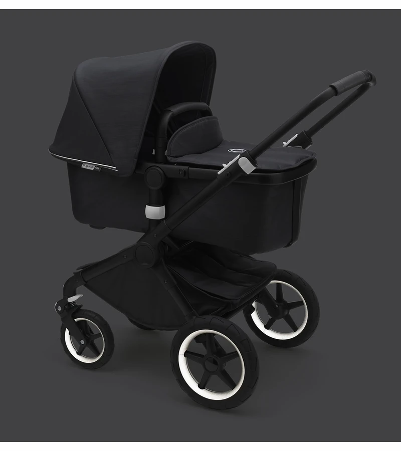 Practical DetailsThe Bugaboo Fox features practical details like the large easy-access under seat basket with built-in pockets, and the foot brake which is easy to apply and release with a simple shoe-friendly clicking action. Integrated Attachment PointsSimply click Bugaboo Accessories directly onto the strollers integrated attachment points. Easily install accessories like the parasol, cup holder or wheeled board, then head out to explore. High Seat PlacementThe strollers seat is positioned at an optimal height, without compromising the stability of the stroller. Perfect for lifting your child in and out. Ultra-light ChassisThe chassis of the Bugaboo Fox is strong and sturdy while weighing in at just 21.8 lbs. Its easier than ever to lift, carry and transport. Seamless One-piece FoldWhether youre bundling it into the car or carrying it up the stairs, the easy one-piece fold and self-standing design makes transporting your stroller hassle-free. Compact FoldIts super-compact fold makes storage a breeze, folding easily into a cupboard-friendly size. High-quality, long-lasting materialsThe Bugaboo Fox is made to last from durable materials and fabrics. You can use it for your first child, pass it through your family and friends, and it will still be going strong years later. Fabrics made with recycled materialsMobility and moving freely shouldnt come at the expense of our planet and the people on it, so Bugaboo created Fox fabrics with existing materials. 92 recycled PET bottles are used to create the Core Collection fabrics for the Bugaboo Fox. Refresh easily to extend the lifecycleWhether its a new season or a new baby, its easy to refresh your stroller with a wide range of colors and fabrics. Switch it up, mix and match, and create a whole new look simply by switching your sun canopy or seat fabrics. Smooth, stable ride on all surfacesAdvanced all-wheel suspension and big tires give a stable, steady ride on any surface; whether its a city sidewalk or a bumpy trail. Ultimate comfort for childBugaboo’s best drive performance yet and new central joint suspension means a smooth, bump-free ride for your child. Plus, the bassinet and seat have been ergonomically designed to make the stroller even more comfortable. Lightest push no effort, just goWhen youre behind the stroller, pushing and steering feels effortless. Navigating corners, busy streets and tight spaces becomes a breeze; its like power steering for your stroller. What You Get: