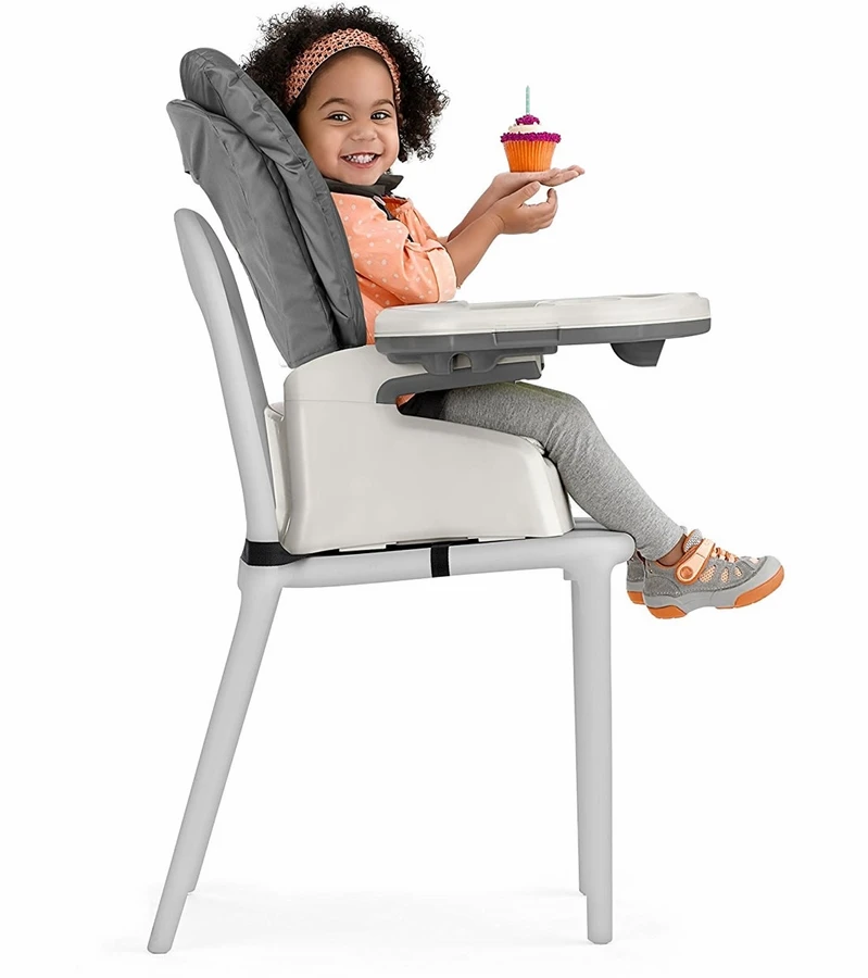 - Highchair seat easily detaches from frame to create Booster and Stool configurations