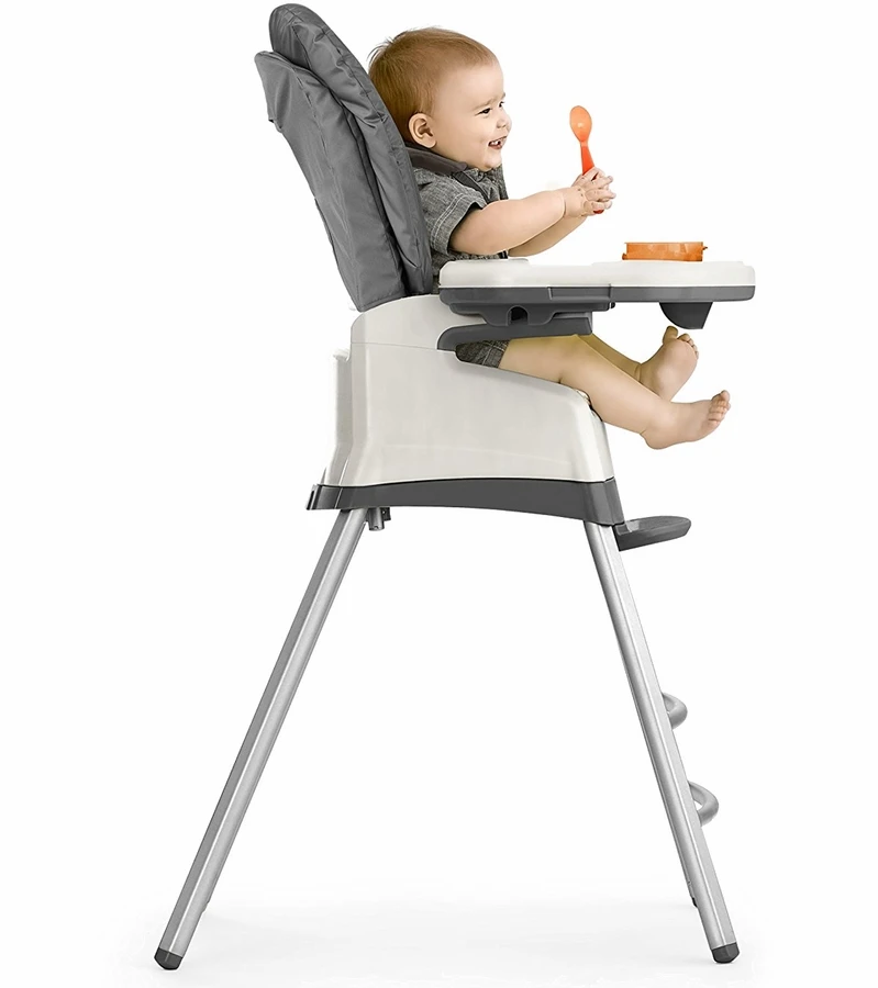- Highchair seat easily detaches from frame to create Booster and Stool configurations