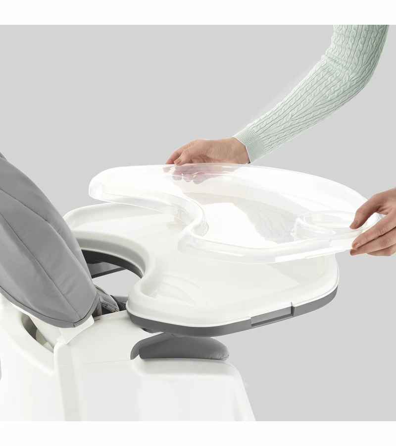 - Highchair seat easily detaches from frame to create booster and stool configurations