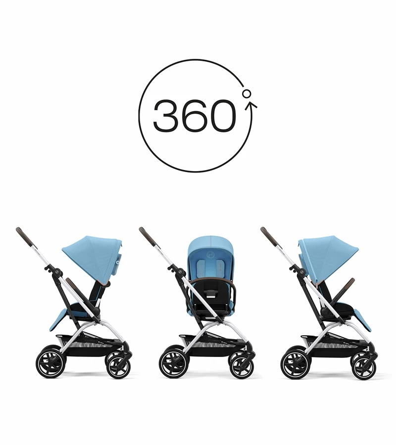 As a compact stroller with a swivel seat, the CYBEX Eezy S Twist+2 makes life easier for parents and more comfortable for their children. With one hand, you can swivel your child’s seat 360°, from parent-facing to forward-facing in seconds. Ideal for the city lifestyle, the Eezy S Twist+2 folds into a compact, self-standing position, so you can easily stow and go.Â