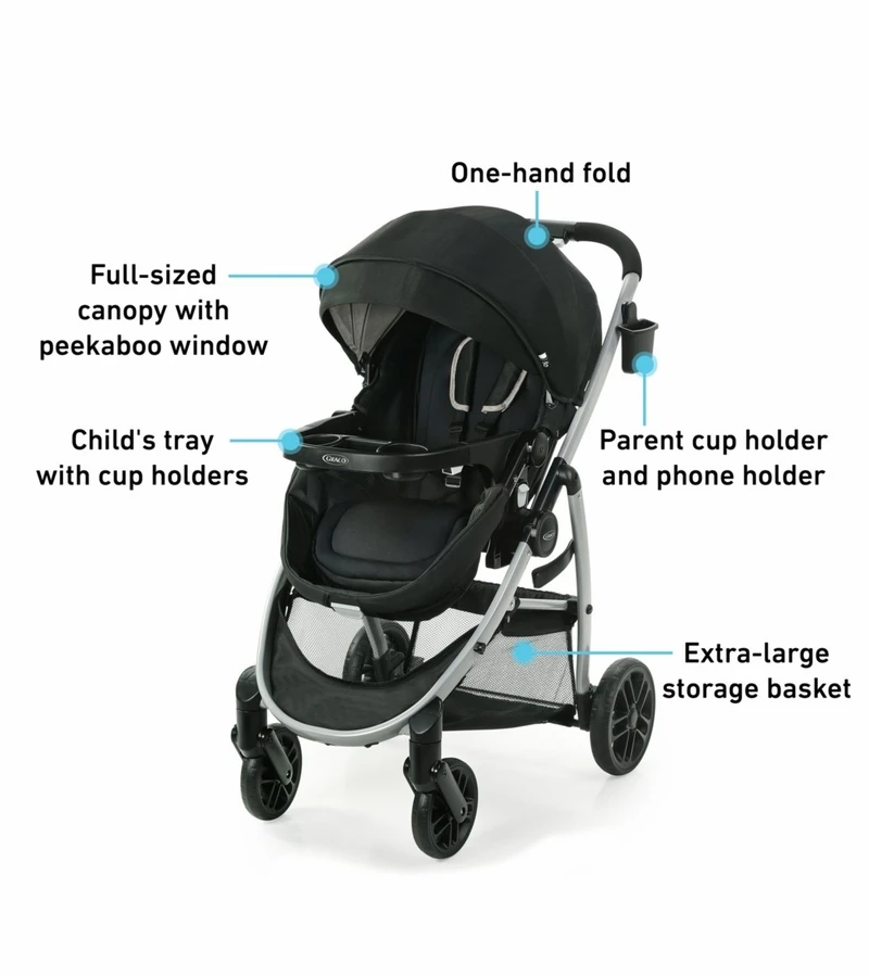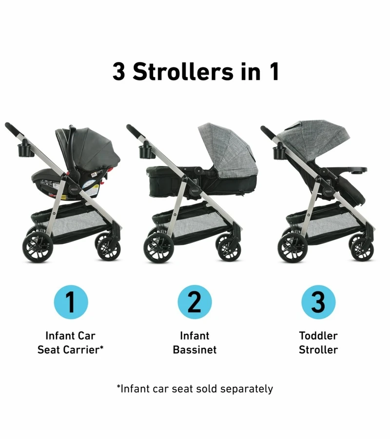 The Graco® Modes™ Pramette Stroller offers you and your child more ways to stroll together, from baby to big kid. It’s 3 strollers in 1—Infant Car Seat Carrier, Infant Bassinet, and Toddler Stroller—for a versatile stroll from infant to toddler (infant car seat sold separately). The toddler seat converts to a true bassinet for comfortable strolls with your baby from day one. For even more options, the stroller accepts all Graco infant car seats, and baby can ride parent-facing or forward-facing, thanks to a reversible stroller seat. With Modes™ Pramette Stroller, every ride is convenient with features such as a one-hand stroller fold for easy storage and transportation. Extra touches like a removable child’s tray with cup holders, parent cup and phone holder, and large canopy with peekaboo window ensure an effortless and comfortable stroll every day.