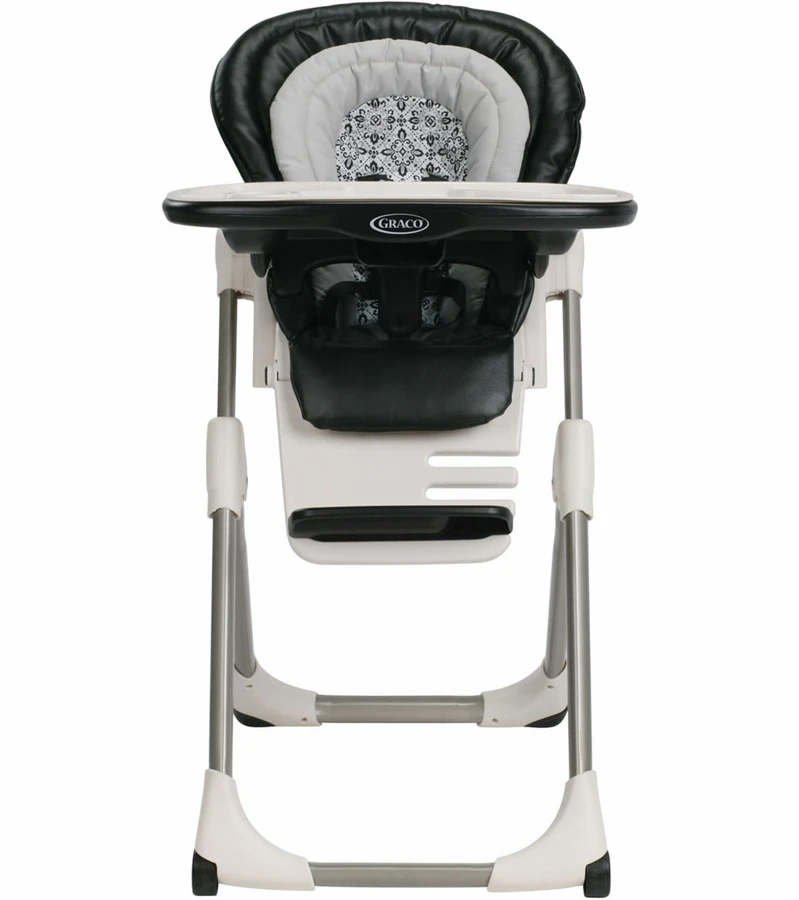 Mealtimes just got easier with the Graco Souffle?, the highchair with an easy, two-step fold. Not only is it super-simple to fold, it features a slim design that is self-standing, making it perfect for storing in between mealtimes. Everything about this full-featured highchair is convenient: the one-hand removable tray with dishwasher safe insert easily snaps onto the frame and folds with it, for all-together storage. It features wipe-able and machine washable seat pad, comfy infant support and reclining seat, harness covers and adjustability for different mealtime needs. Enjoy mealtimes, then fold, stow and forget it until next time. Easy!