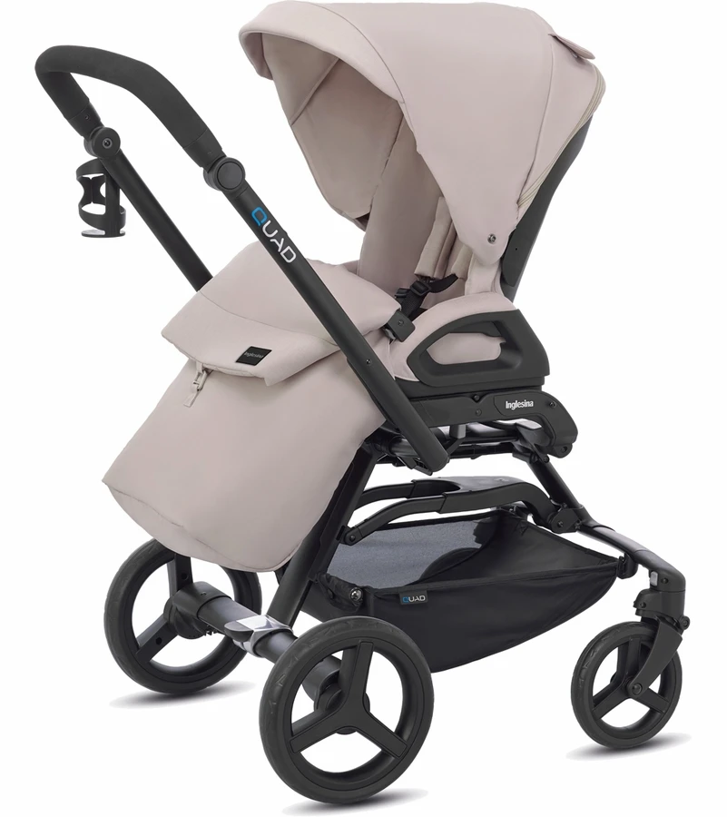 Thanks to its single handle, Quad can be pushed comfortably just with one hand. The Inglesina-patented locking system makes it possible to close and reopen the frame with one hand. The stroller features a reversible seat, easily adjustable to face either the parent or the outside world. Quad’s wide seat is suitable to accommodate the child from the earliest months of life and it is made to be used for all seasons thanks to the rain cover and foldaway hood with sun shade extension. The optional bassinet, extra large and designed according to the latest safety standards, has a wraparound shape that ensures a high level of protection.