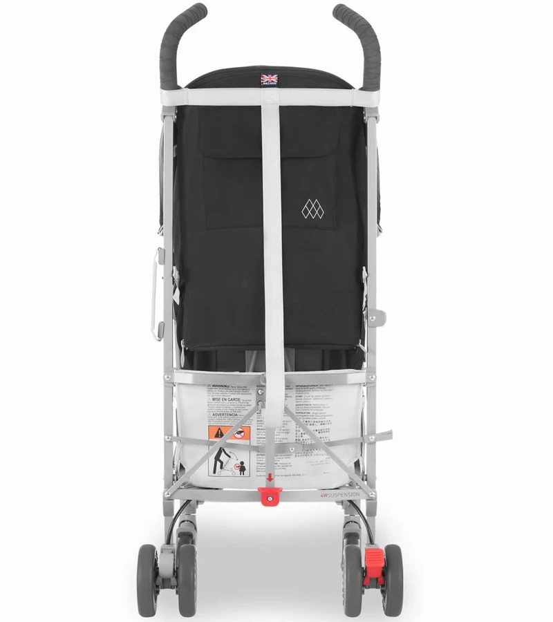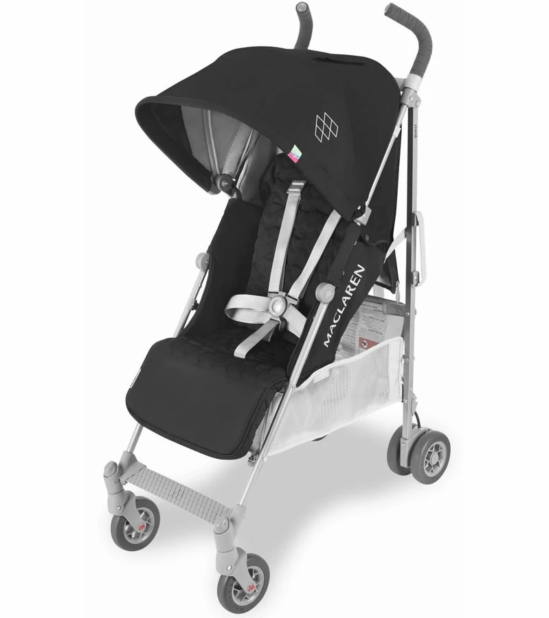 Five safety straps securely mounted to our aluminum frame mated with our exclusive two-finger release buckle making every Maclaren the safest seat around.