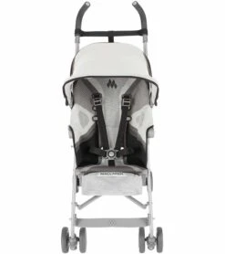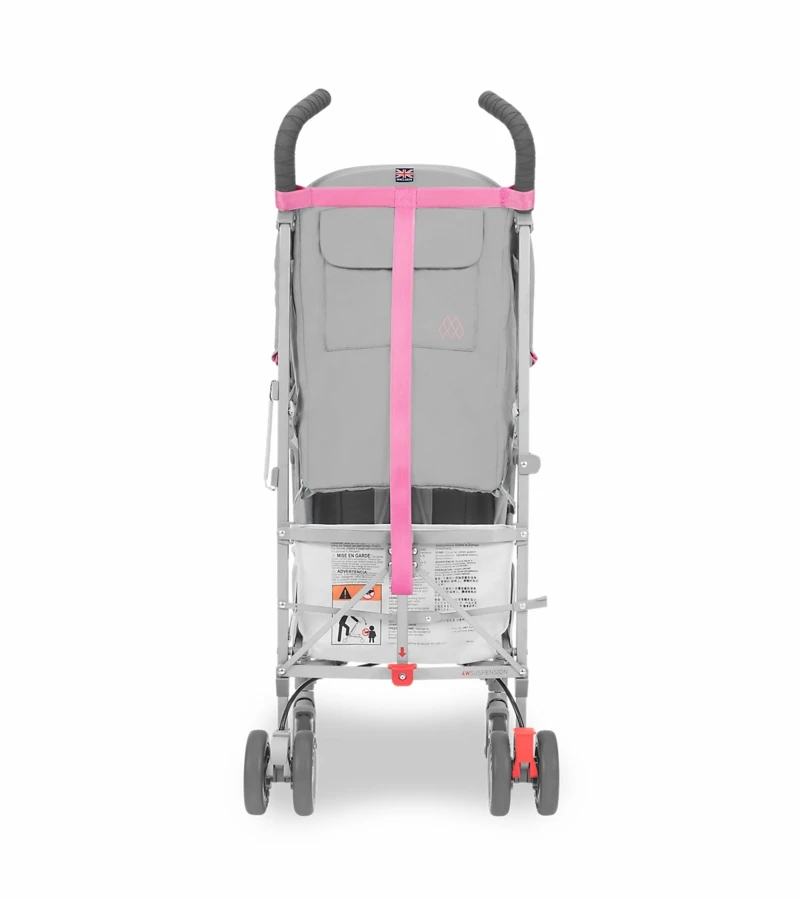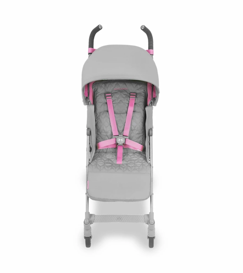 Five safety straps securely mounted to our aluminum frame mated with our exclusive two-finger release buckle making every Maclaren the safest seat around.