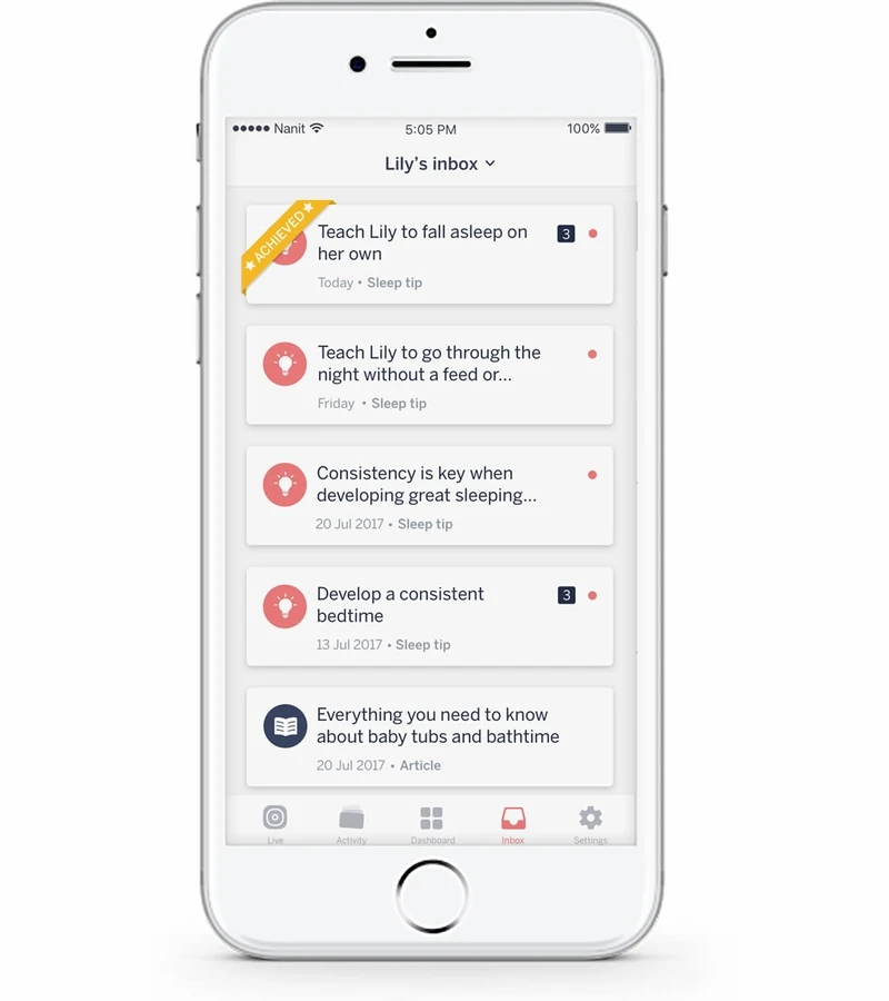 Nanit tracks how your baby is progressing compared to healthy averages for babies of the same age, and lets you know when your little snoozer is making progress.
