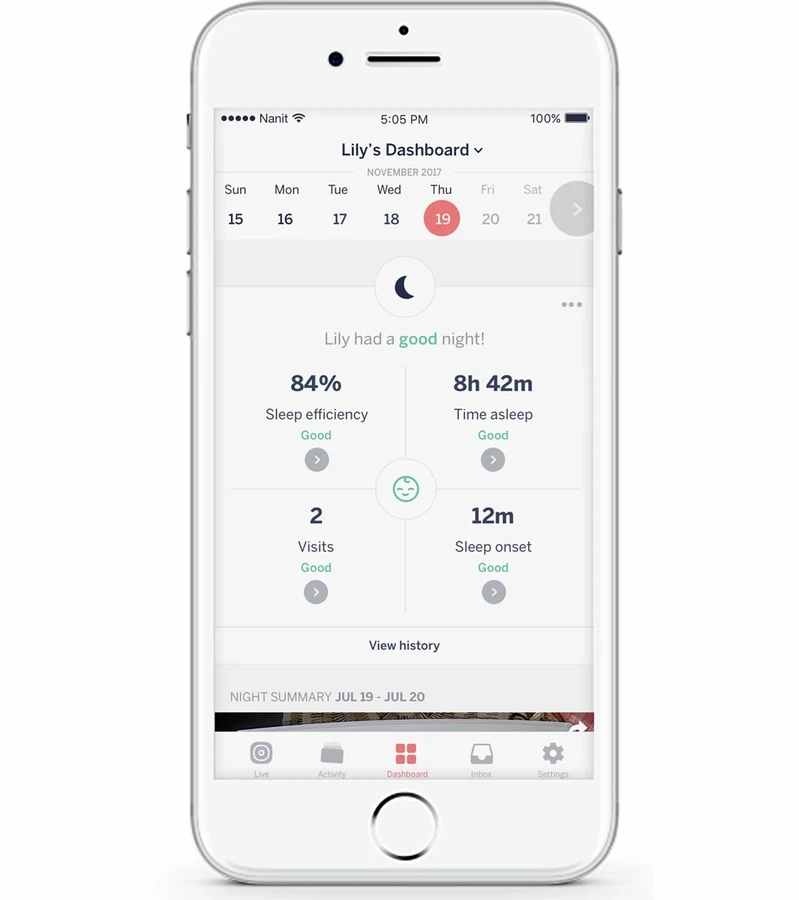 Nanit tracks how your baby is progressing compared to healthy averages for babies of the same age, and lets you know when your little snoozer is making progress.