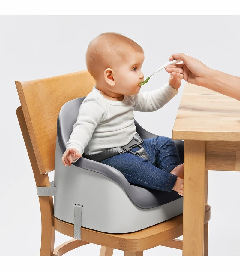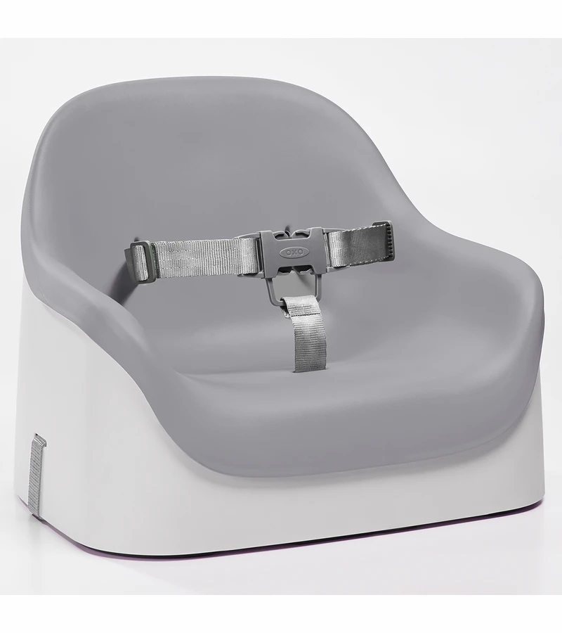 The OXO Tot Nest™ Booster Seat is a Booster Seat with Straps that will bring kids to the family table from as young as nine months. The Nest Booster Seat was designed with a soft cushion, as well as a high back and sides, to make any grown-up chair comfortable for your little one. It was also designed to be easy to clean and store, to make the after-meal clean up comfortable for you. The 3-point harness keeps even the wiggliest tot secure, and is adjustable for growing kids. Two side-release buckles keep kids securely strapped in (and keep them from escaping!). The back and bottom chair straps are adjustable for a secure fit on different chair styles and sizes and the non-slip feet keep the Nest Booster Seat stable while protecting chairs from scratches. The built-in handle allows for easy transport and the straps are removable for children over 3 years. Whether for a quick trip to Grandma’s or for long-term storage, the straps store neatly in a compartment under the Booster Seat. The simple, sleek design complements any home décor.