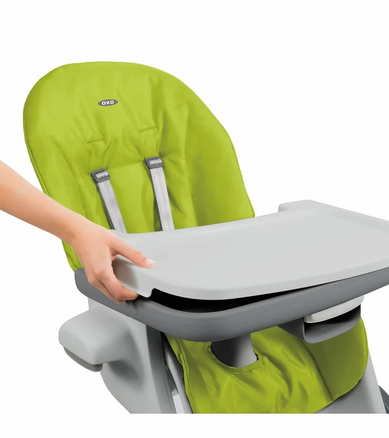 Mealtime can be messy, so the Chair and cushions are easily wipe able for quick cleanup of crumbs and other sticky situations. The removable tray cover is dishwasher safe and the stain-resistant cushion is easily removable and machine washable for those extra-big messes.