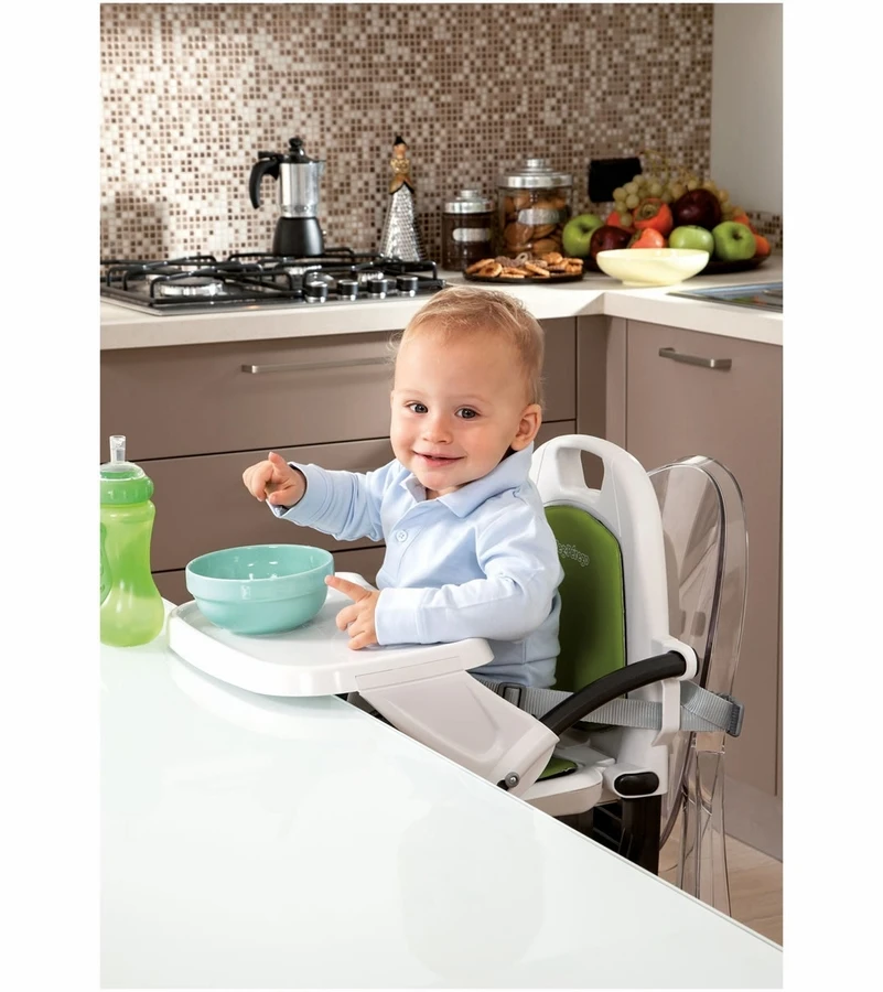 Extremely compact, it can be carried anywhere thanks to the practical bag supplied. Finally, your child will be able to eat safely and comfortably at home, at the restaurant, at the grandparents’, on vacation.
