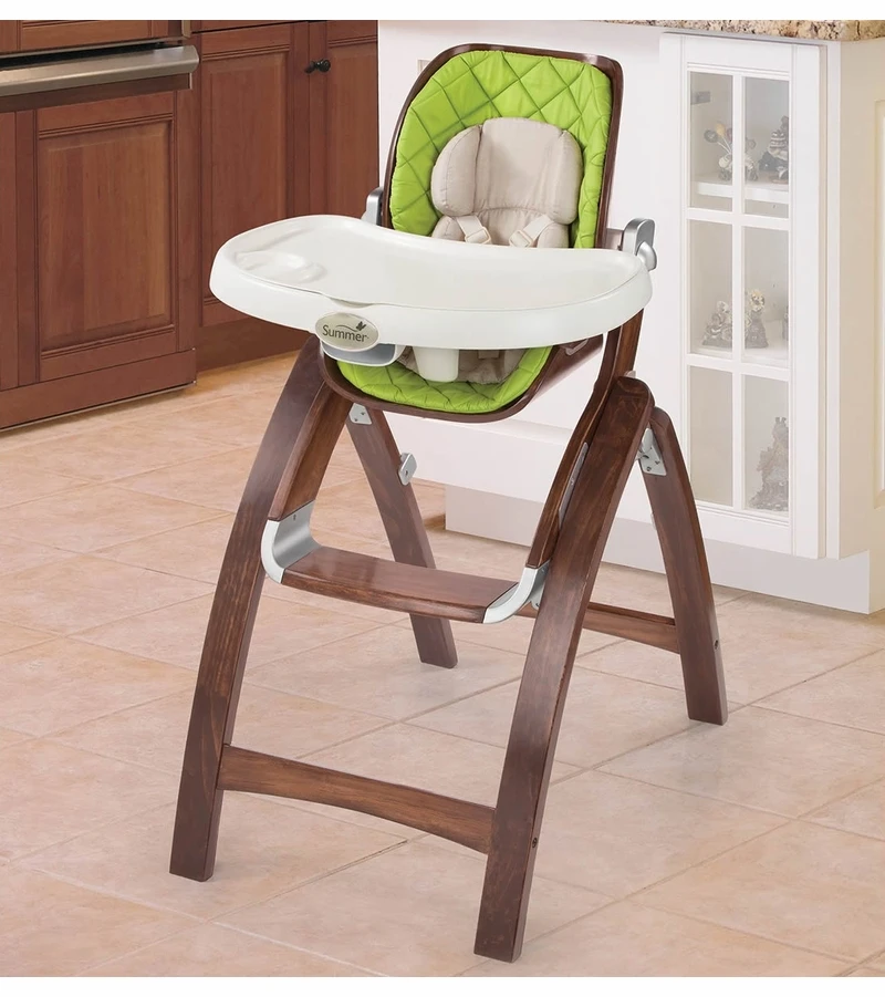 The Bentwood Highchair provides a beautiful, safe place for your baby to eat during mealtime. Featuring a 3 position recline, 4 position height adjustable seat, compact fold and extended use as an up to the table booster for toddlers, it is the only highchair you will need from birth to 50lbs.