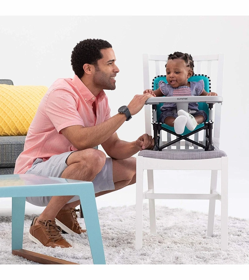 The Summer? Pop ?N Sit? SE Booster is the perfect chair for your little one. Whether you need a booster at a restaurant, a chair at the beach, or even a floor seat at home ? this booster is your all-in-one solution. Use as a floor activity seat to entertain baby or attach to an adult chair to use as a booster. Plus, the removable tray makes it easy to transition from feeding to play time. Clean up is easy with the removable, machine-washable fabric and dishwasher safe tray. Featuring an innovative pop and fold design that sets up in seconds, a compact fold, and included carry bag, the Pop ?N Sit is easy to bring with you on all your adventures; both indoors & outdoors.